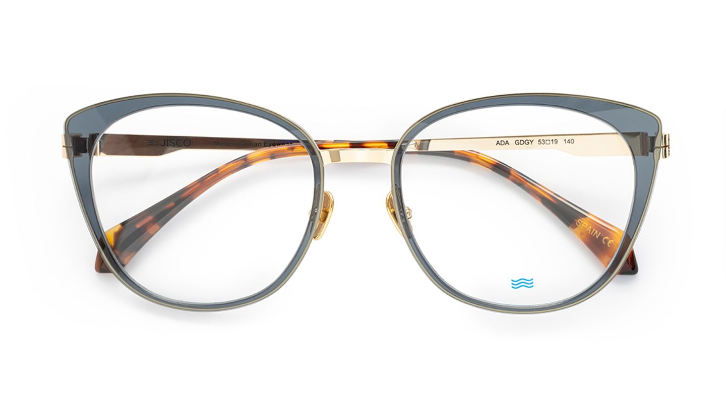 De ADA GDGY combineert een zachte, vrouwelijke cat-eye vorm met een subtiel grijsblauwe rand rond de glazen. De fijne goudkleurige titanium constructie zorgt voor een luxueuze en luchtige uitstraling, terwijl de transparante details en havana-accenten aan de veren extra warmte en karakter toevoegen. Het samenspel van koel grijs en warm goud maakt dit montuur bijzonder veelzijdig én modieus.