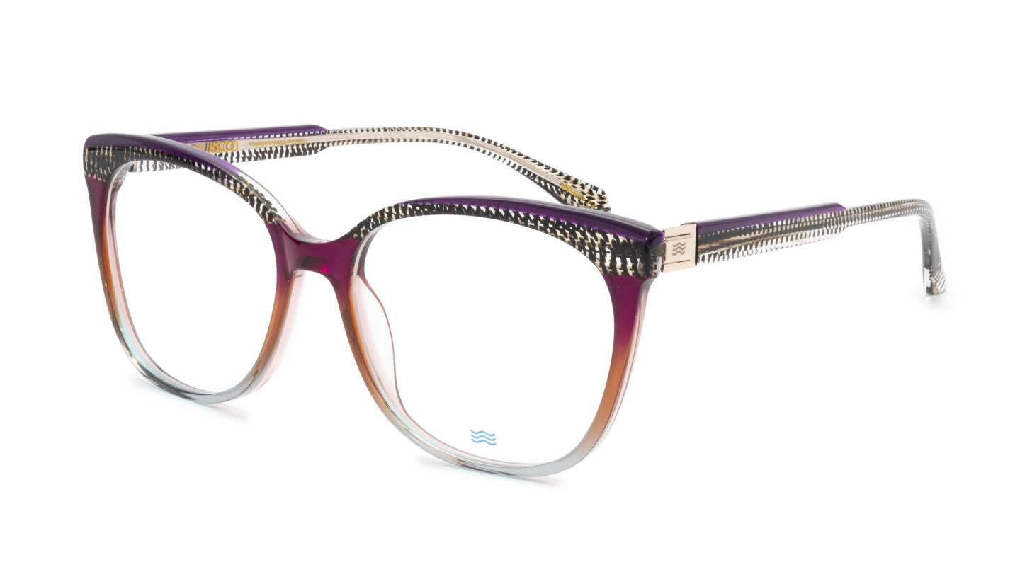 • Kleur montuur: Paars met amberkleurige overgang en zwart-wit patroon