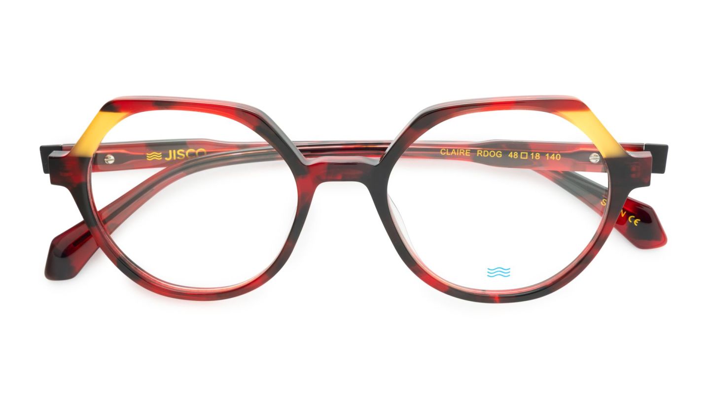 De JISCO Claire RDOG bril op sterkte is een echte blikvanger. Dit uitgesproken acetaat montuur combineert een elegante, ronde vorm met een krachtige rood-tortoise kleur en subtiele gele accenten. Perfect voor wie houdt van karaktervolle, designer eyewear met een vrouwelijke touch.